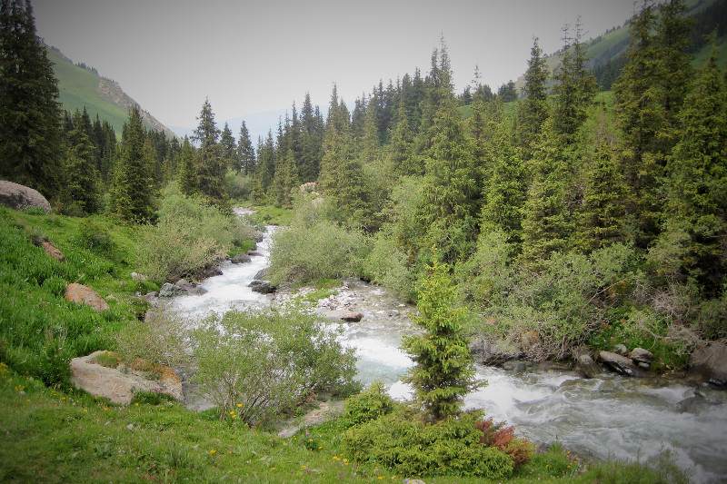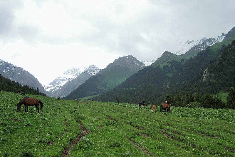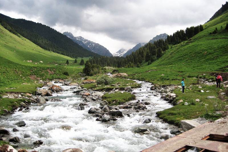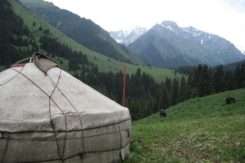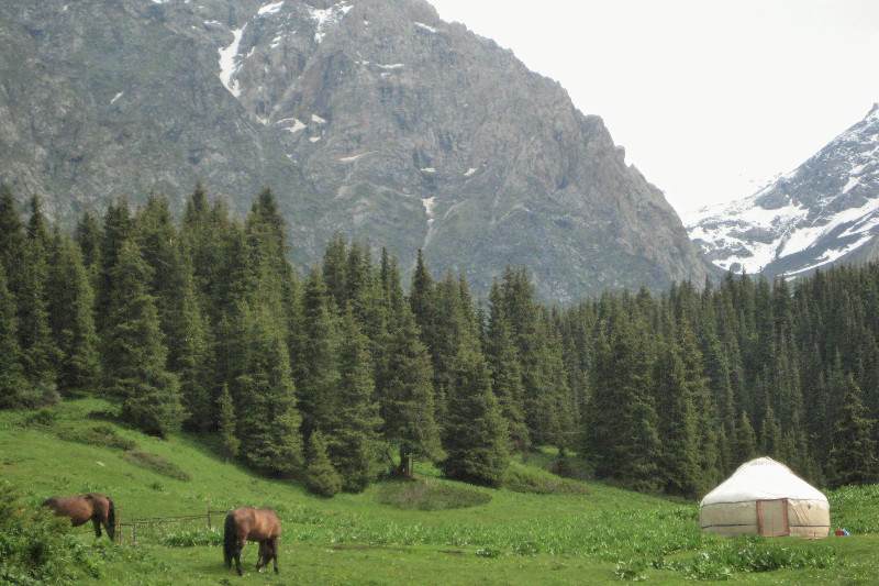 This easy day hike goes directly into the mountains from the village of Birinchi Mai (May Day). It's a beautiful hike that passes many yurt camps, where local families stay for the summer while their animals are in the high pastures.