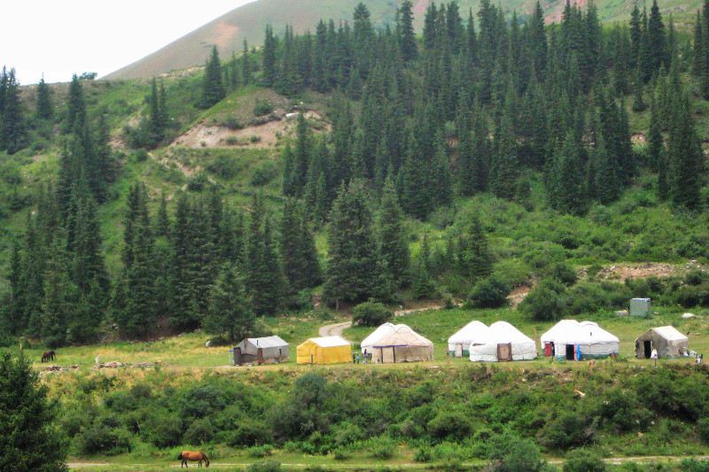 From Akel's Yurt Camp, start out on the jeep path into the mountains. You can continue to follow the jeep path, or head up one of the steeper but faster footpaths. Just above the tree line you will reach a broad plateau. From there, there are many paths into the jailoos (pastures) and surrounding mountains.